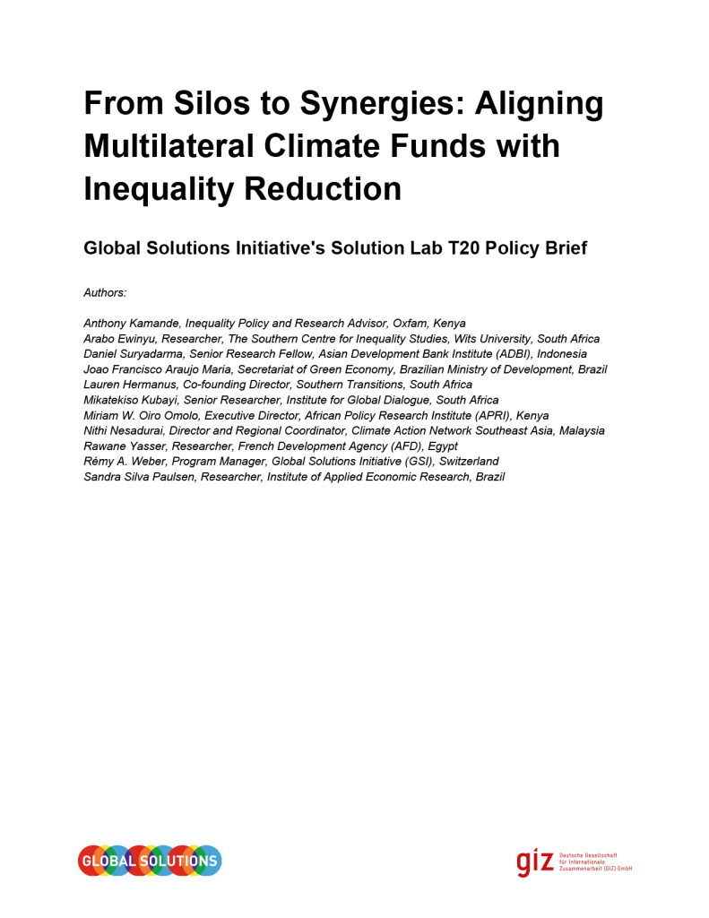 From Silos to Synergies: Aligning Multilateral Climate Funds with Inequality Reduction