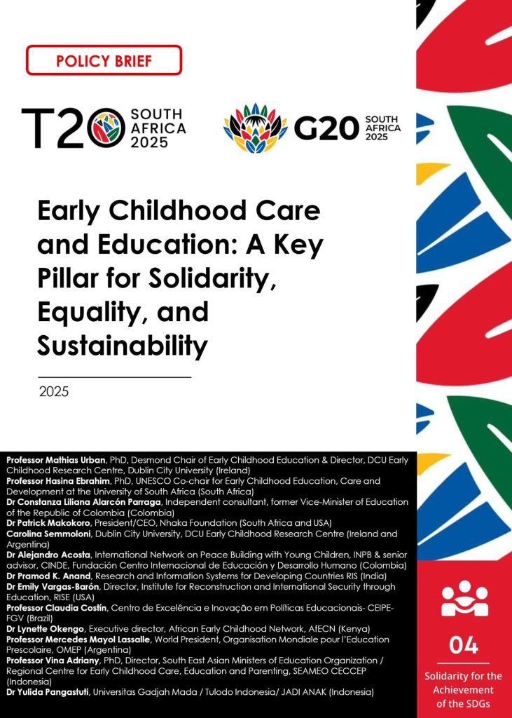 G20 2025 emphasises Solidarity, Equality, Sustainability; T20 pivots on Consolidate and Sustain. This policy brief presents Early Childhood Care and Education (ECCE) as key to achieving sustainable development goals (SDGs), reducing inequalities, and building resilient, inclusive, peaceful and sustainable societies.