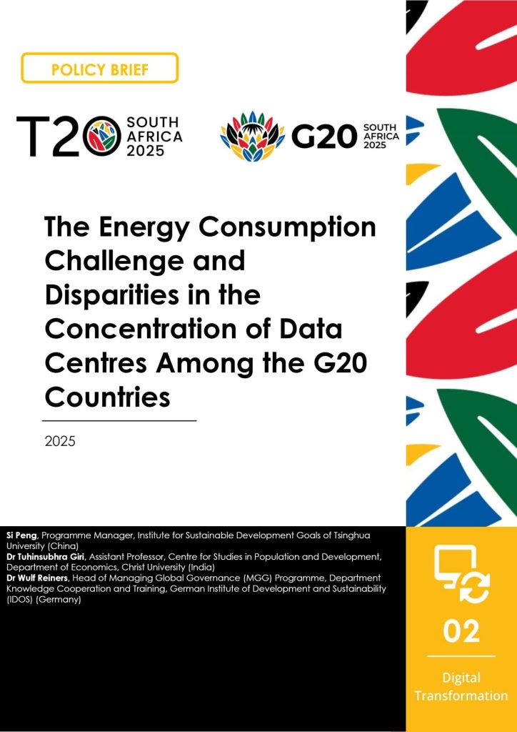 This policy brief analyses the paradoxical relationship between digitalisation and energy consumption from the perspectives of data centres within the G20. Moreover, it underscores the significant disparities in distribution and concentration, energy consumption of data centres, revealing the substantial imbalances in data power and energy resources among the G20. The policy brief proposes recommendations for the G20 to achieve climate- and resource-friendly digitalisation by balancing the increasing demand of data centres and energy requirements.